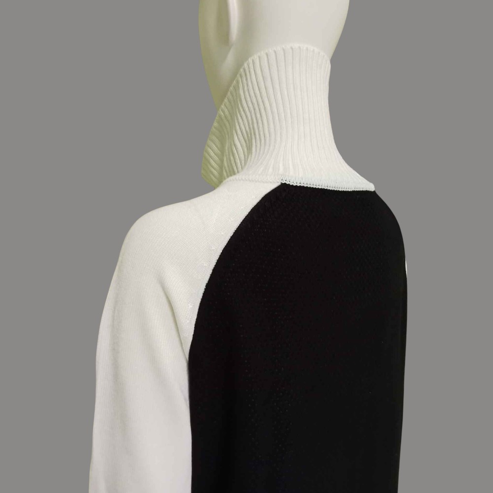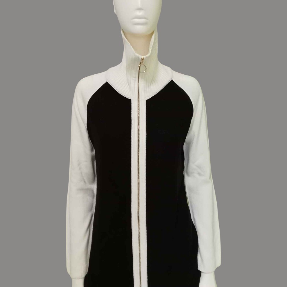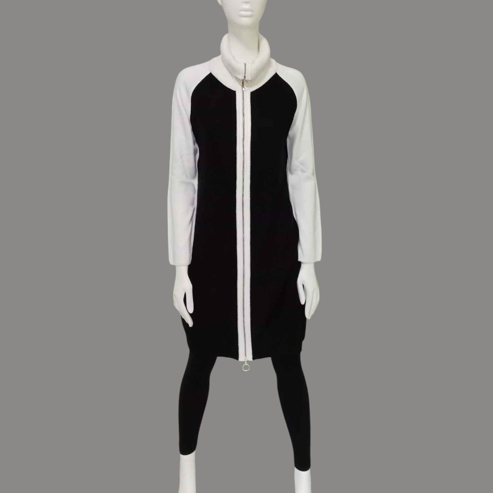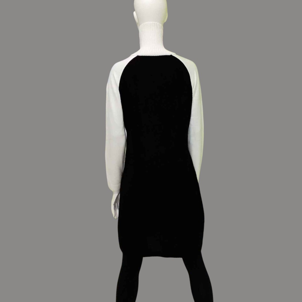 Abito bicolore lavorazione a maglia collo alto manica lunga Chiusura frontale con zip