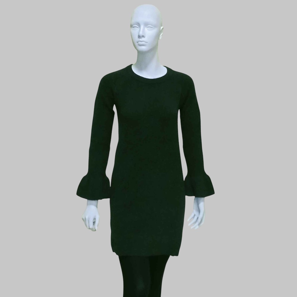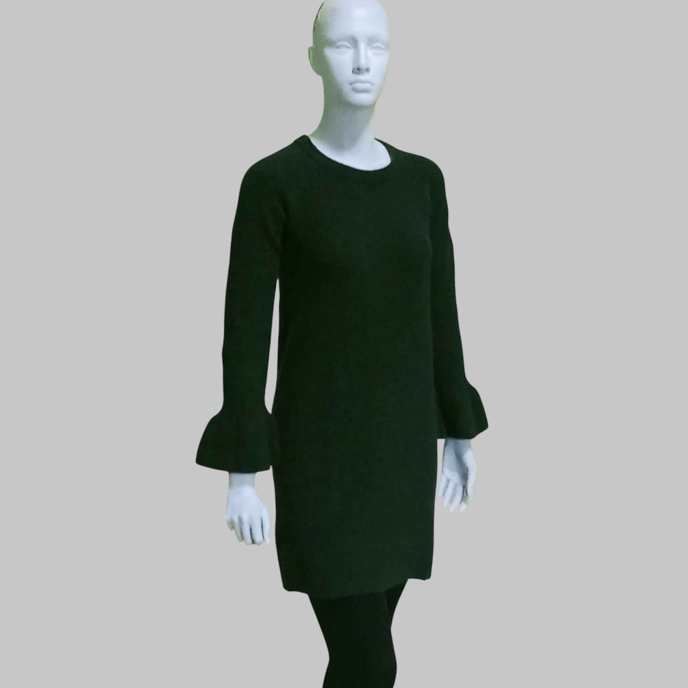 Miniabito maglione, tinta unita, polsini a balze, manica lunga, collo tondo. Anni 2018-2020