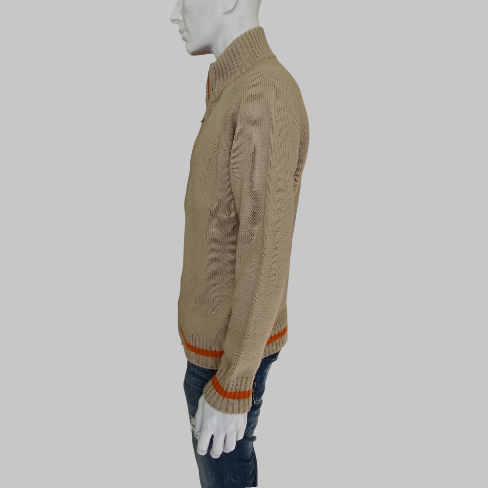 Cardigan tinta unita con apertura frontale zip. Collo a lupetto manica lunga