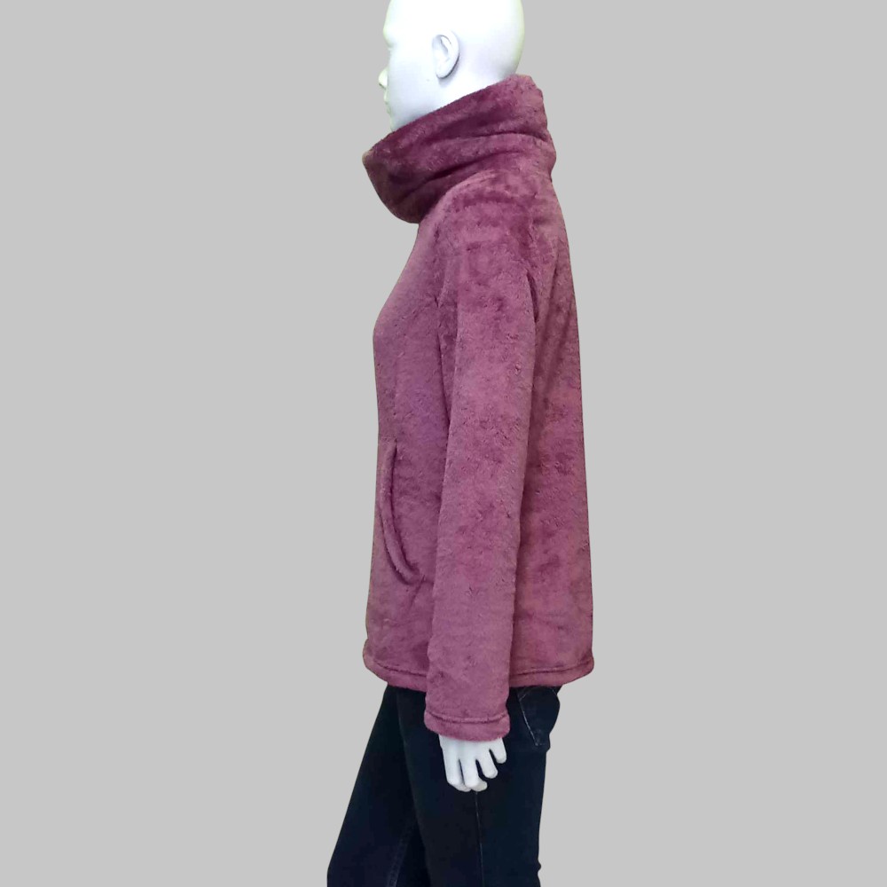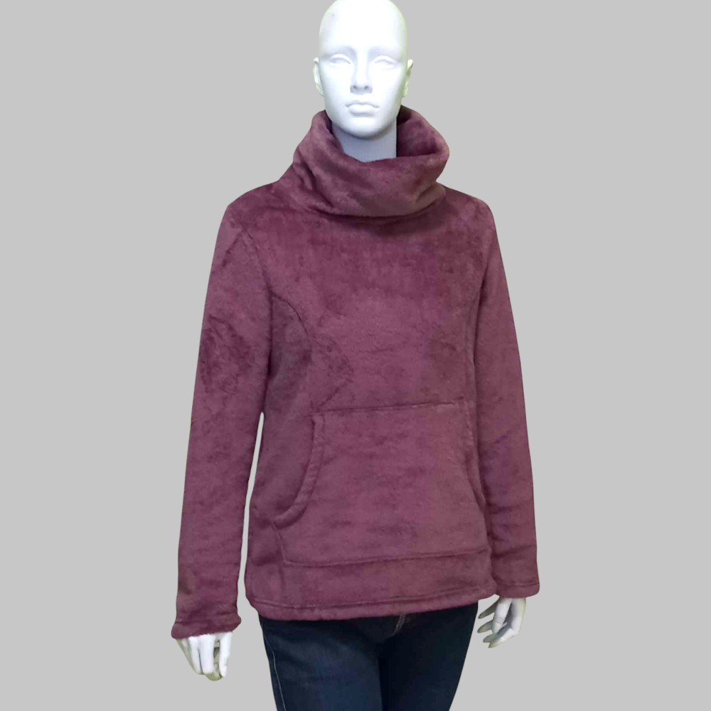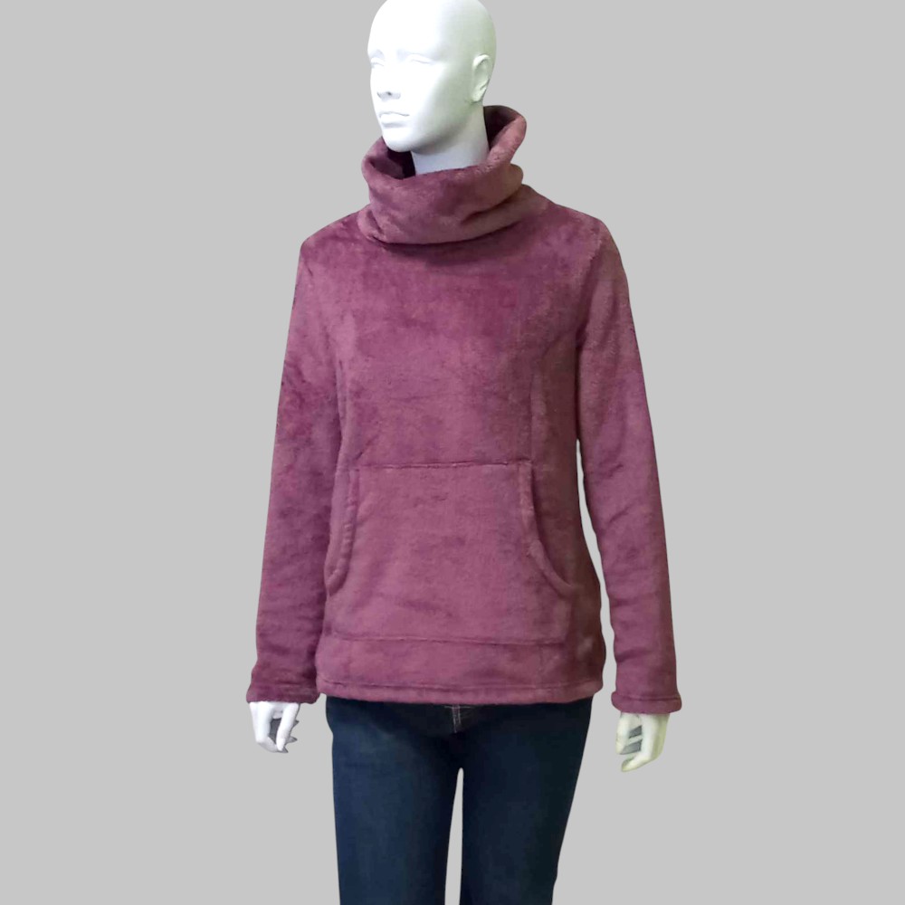 Felpa / maglione in pile, taglio morbido, collo alto, manica lunga e tasca a marsupio
