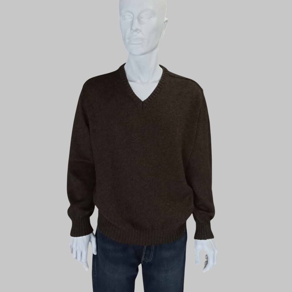 Pullover tinta unita, senza applicazioni, collo a V, manica lunga