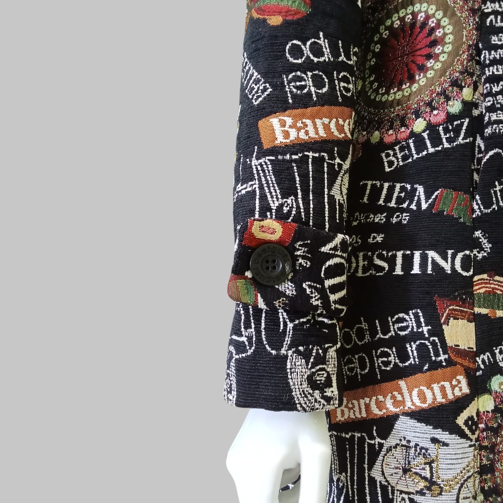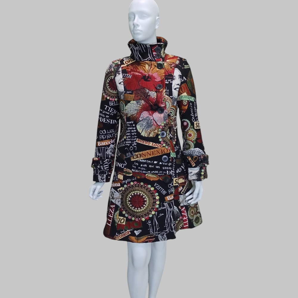 Cappotto pesante a fantasia  Chiusura a bottoni fino al collo. Due tasche
