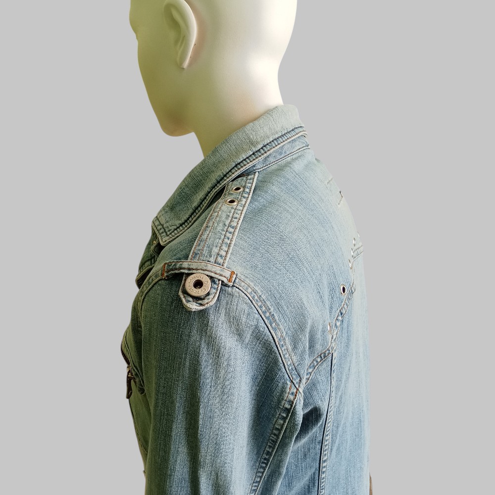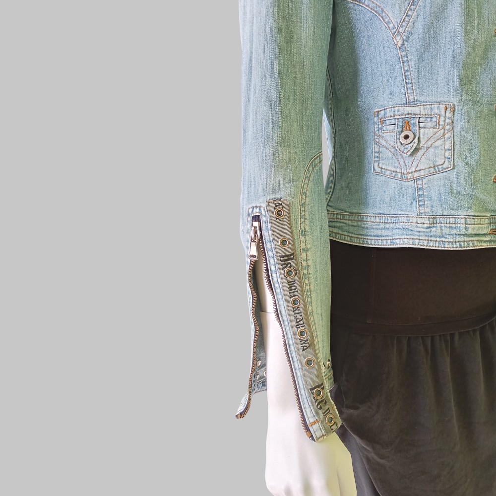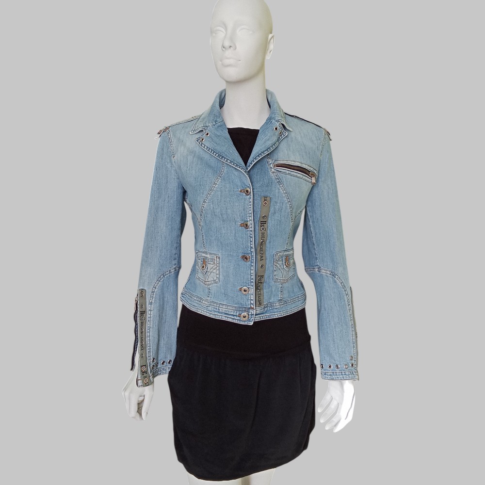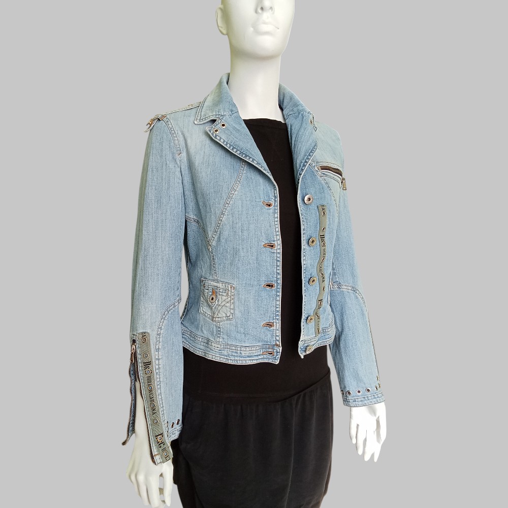 D&G – Giubbino denim anni 80 stile biker con zip e borchie