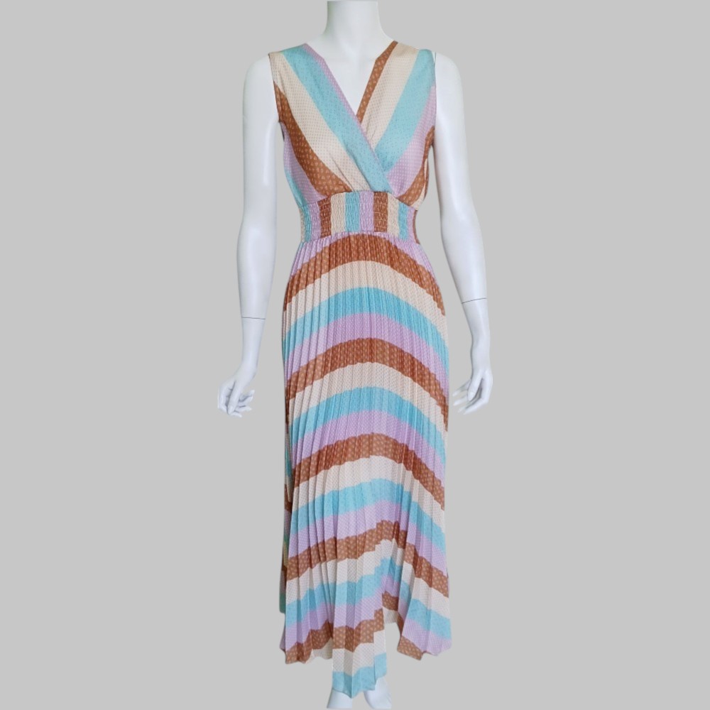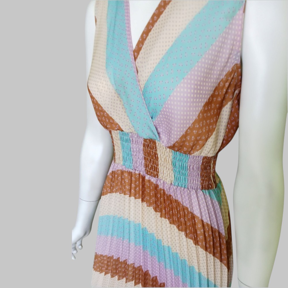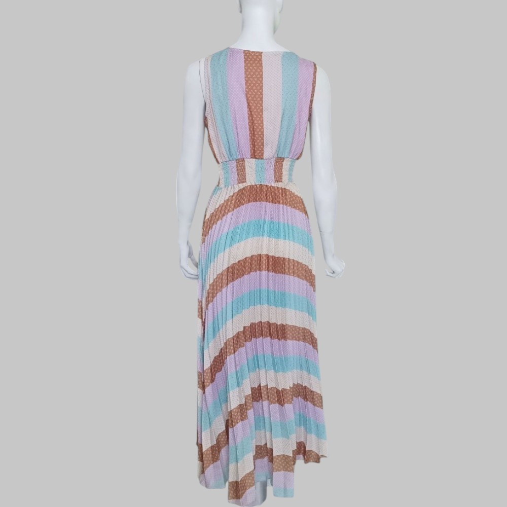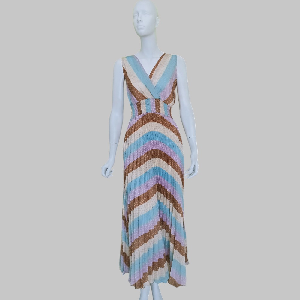 Vestito colorato  lungo a pieghe con alta fascia elastica in vita