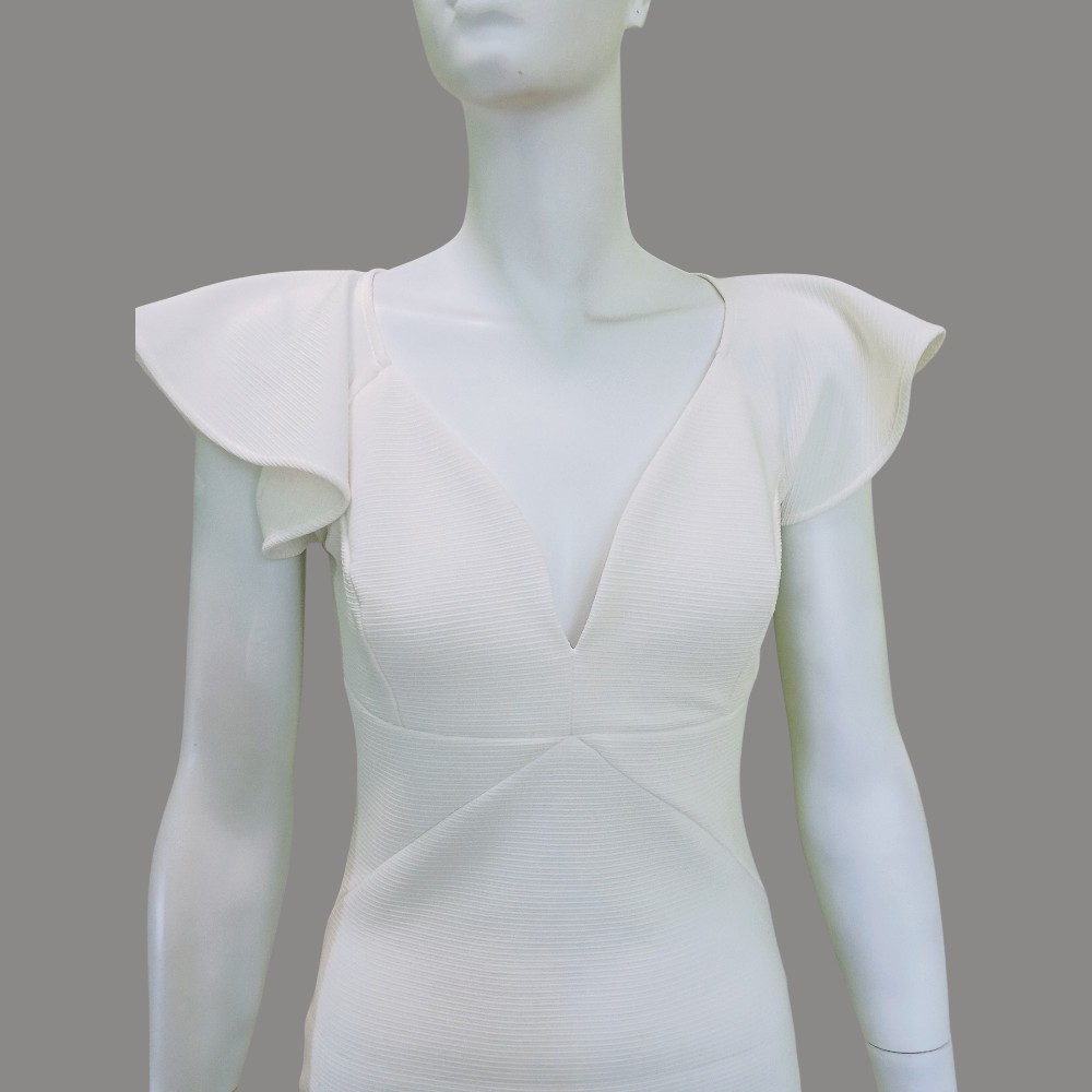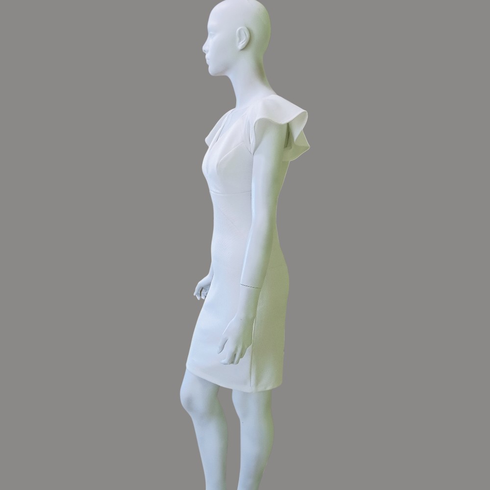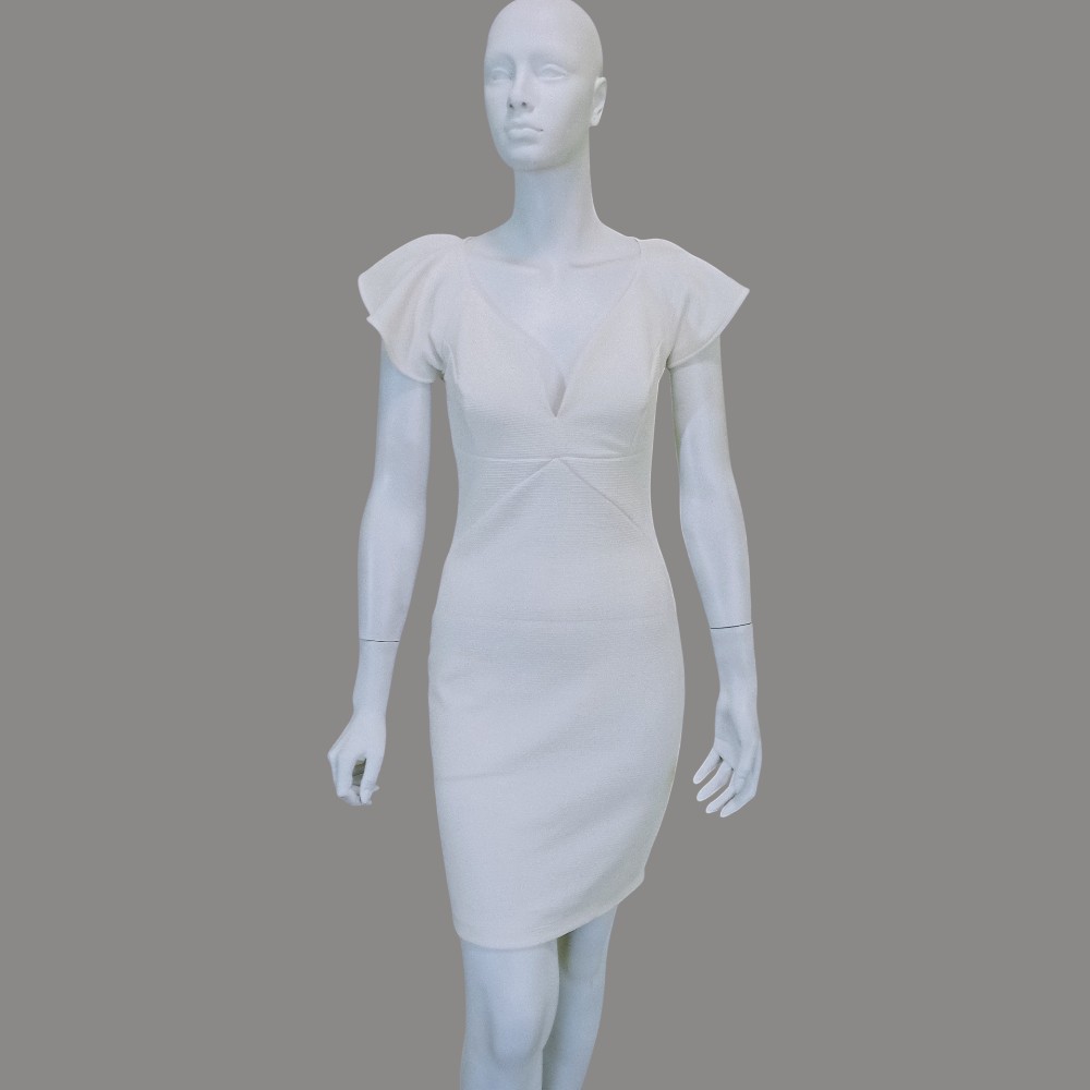 Tubino bianco elegante, aderente con cuciture a vista in vita e sui fianchi