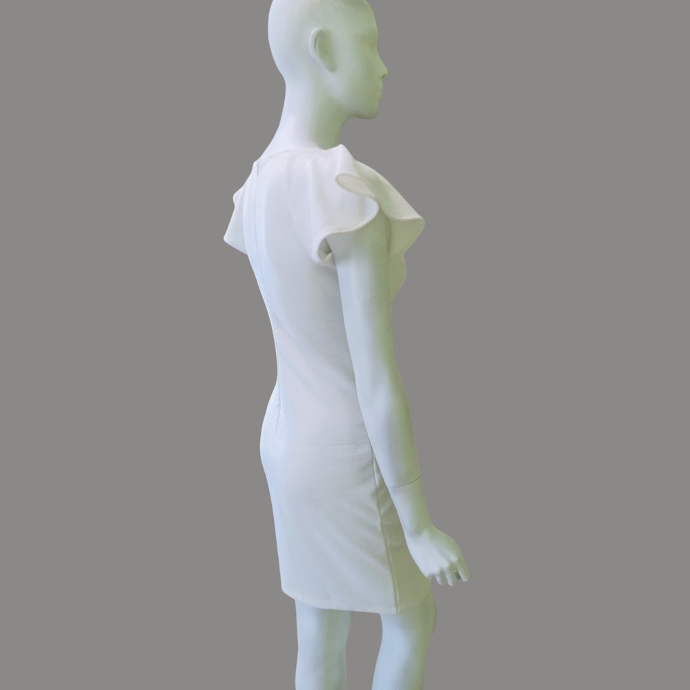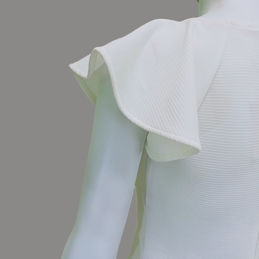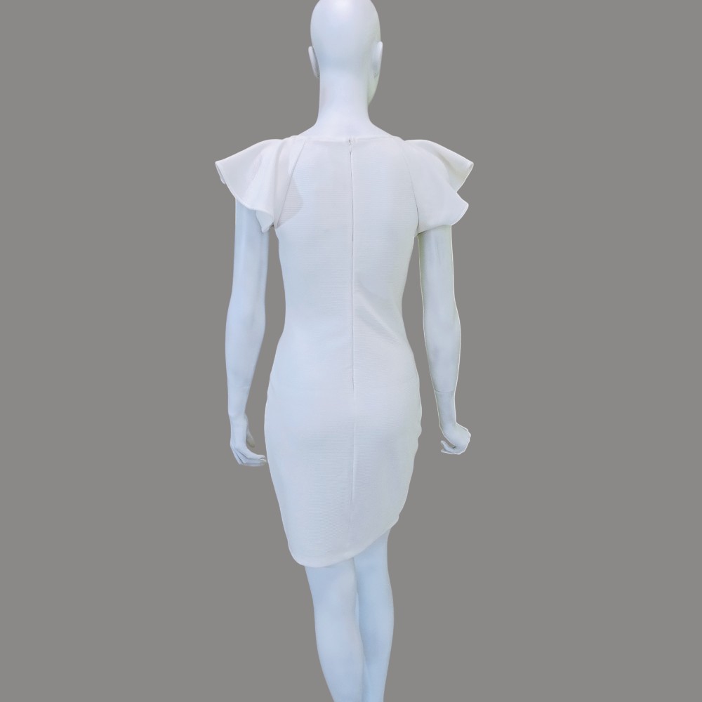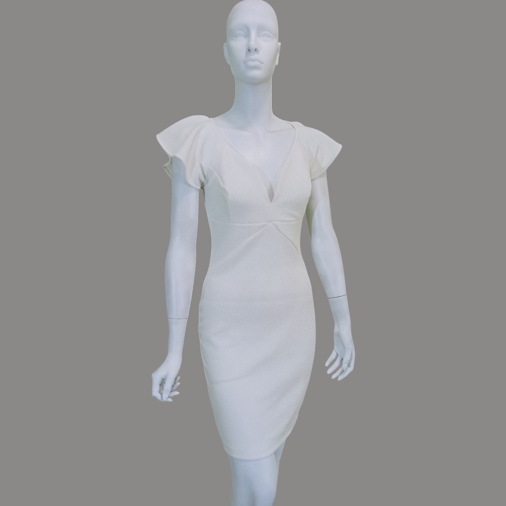 Tubino bianco elegante, aderente con cuciture a vista in vita e sui fianchi