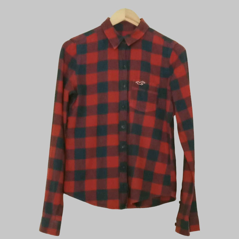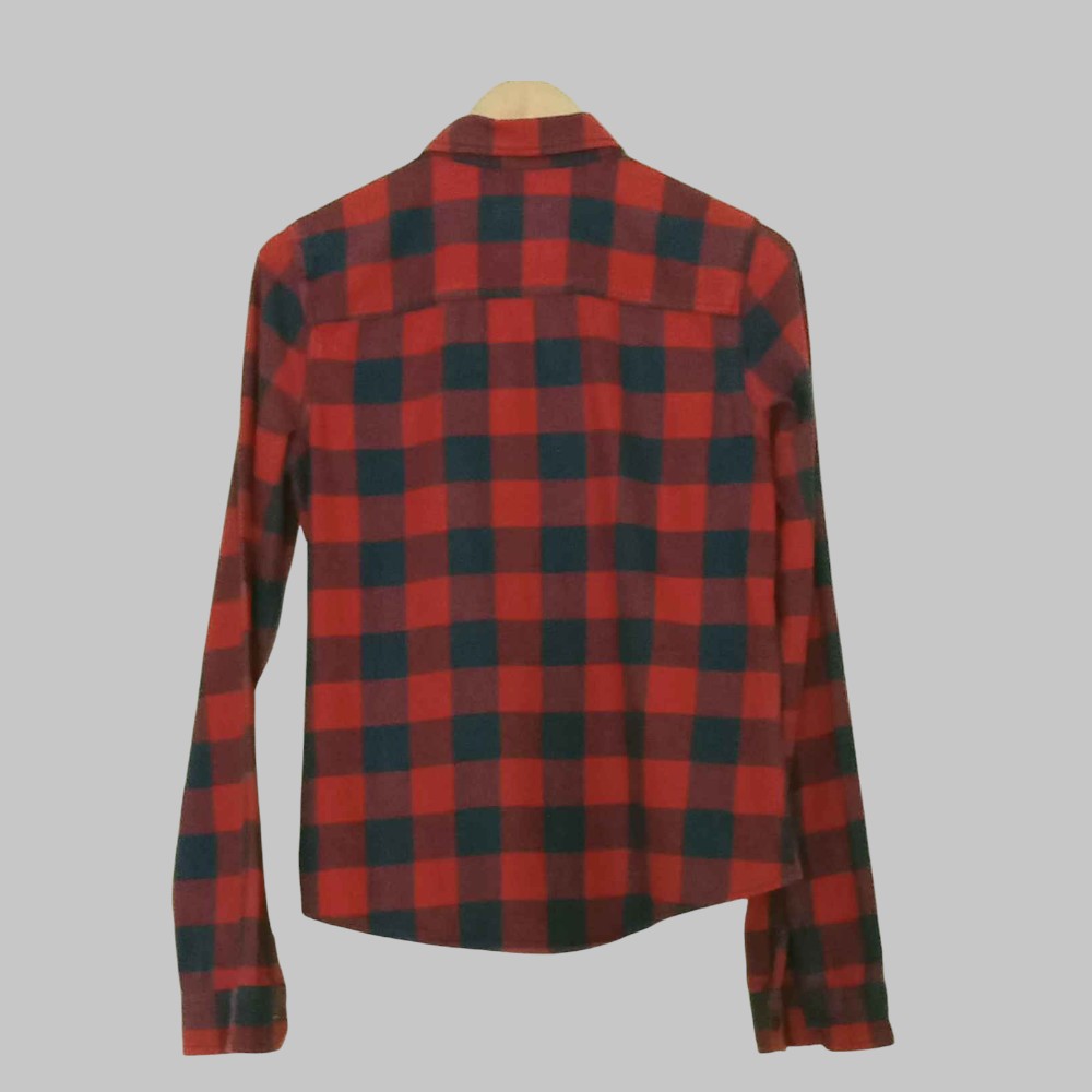 Camicia a quadri in flanella, un taschino con logo, chiusura con bottoni
