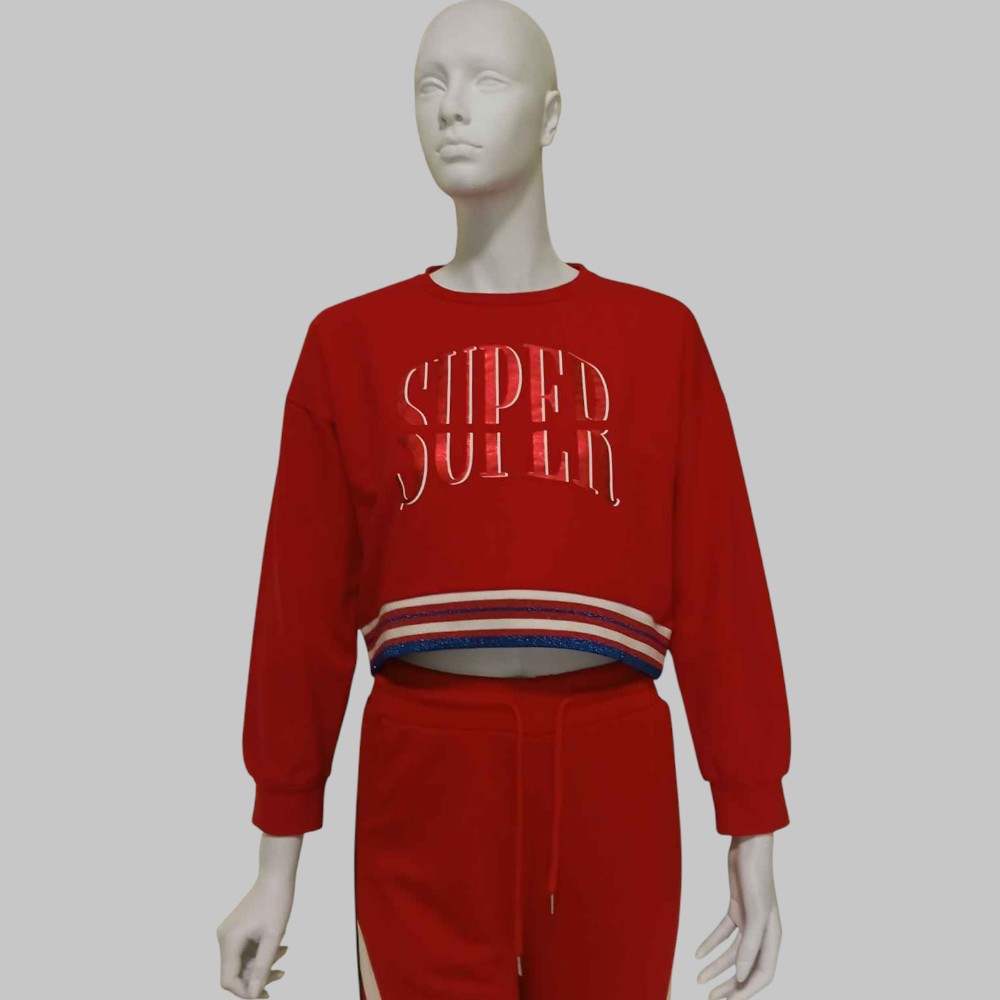 RAGAZZA. Felpa corta con bordatura elasticizzata e stampa frontale. Manica lunga Collo tondo.
