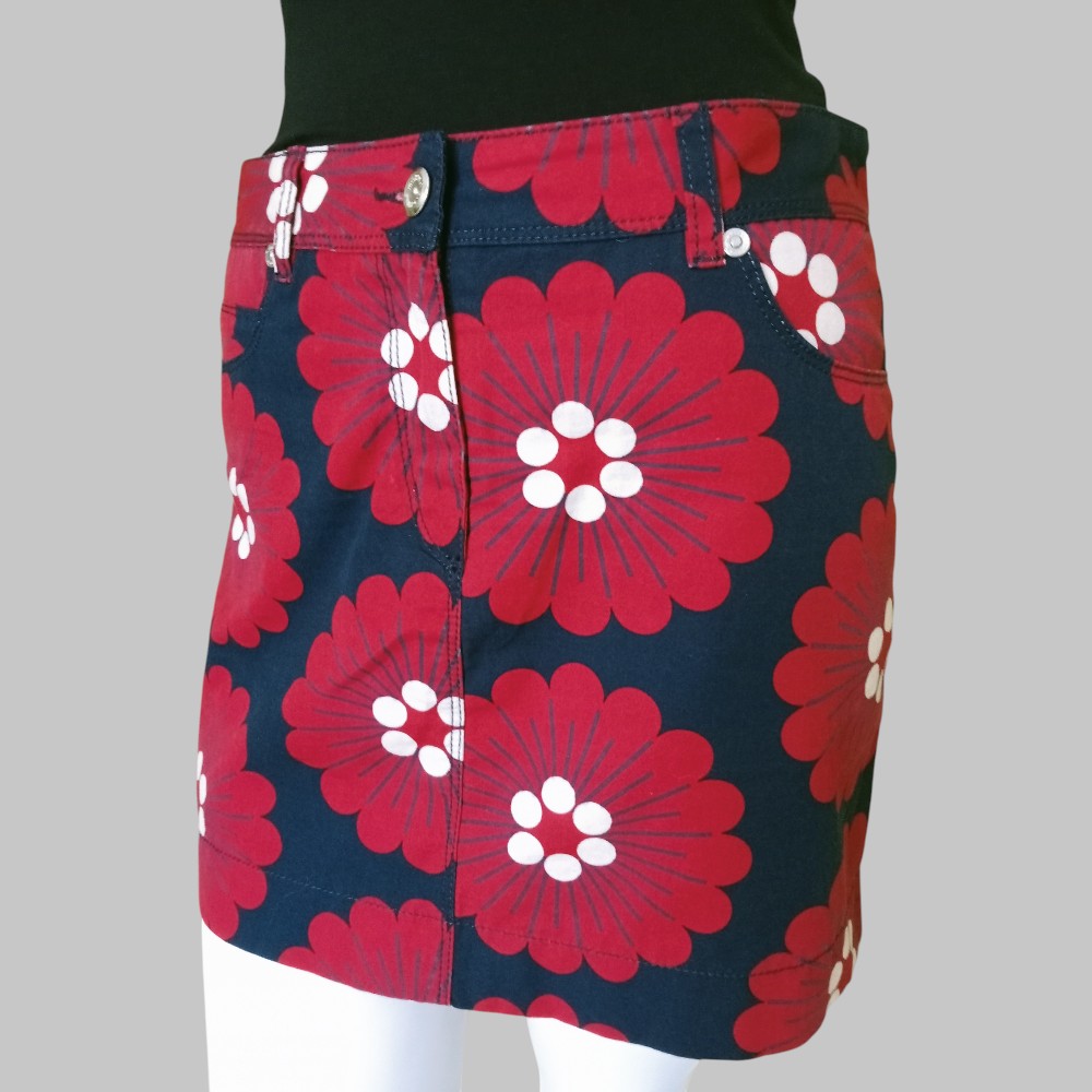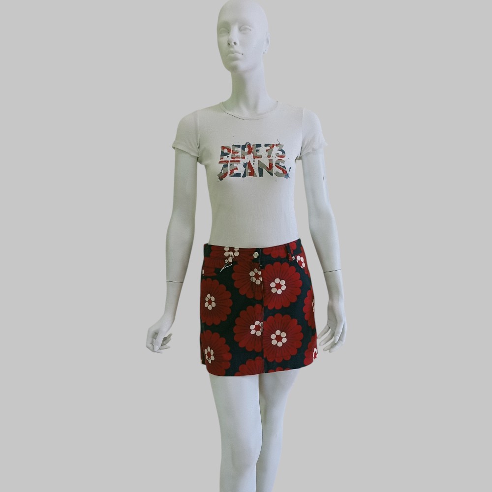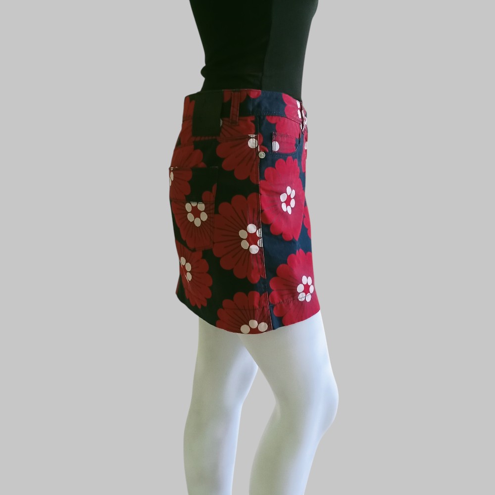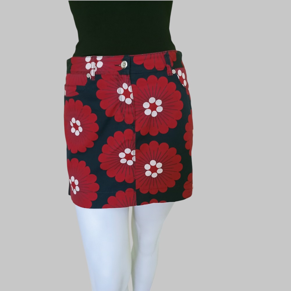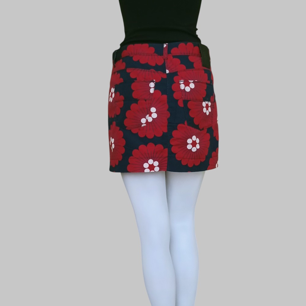 Minigonna rossa a fantasia con fiori