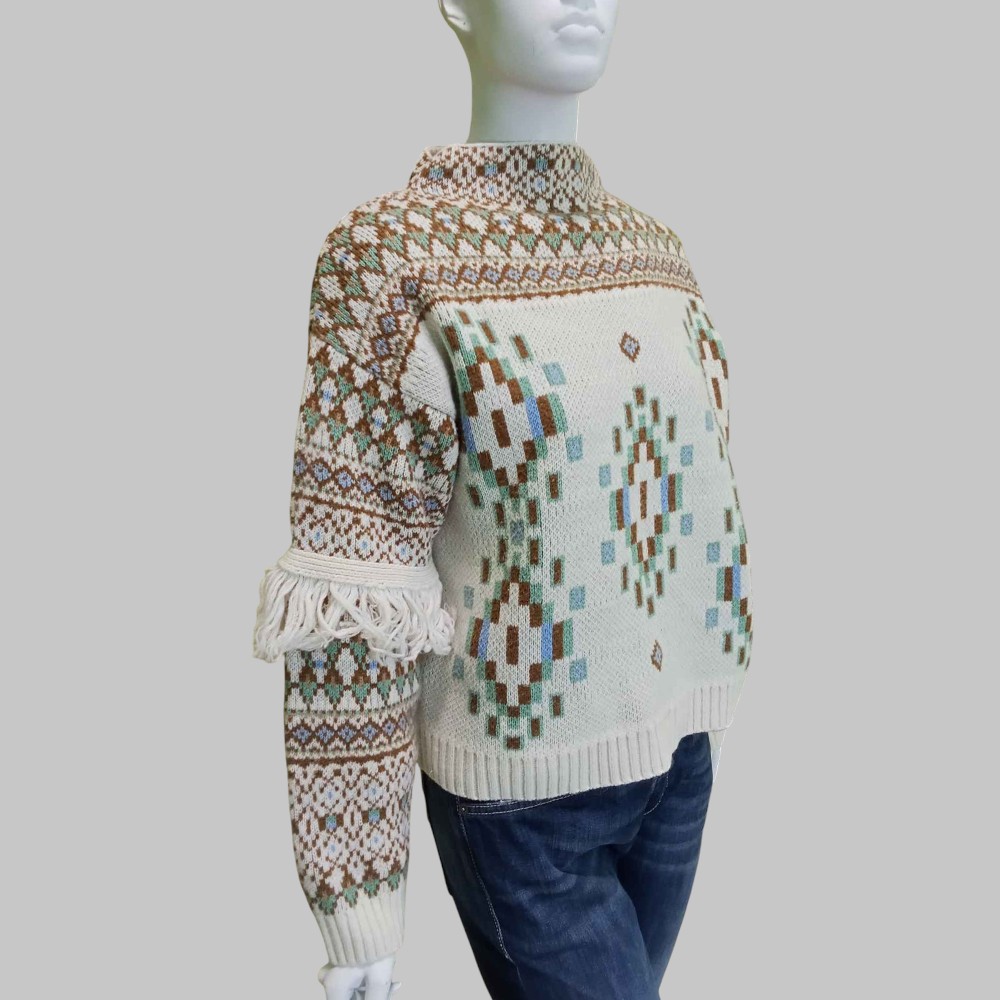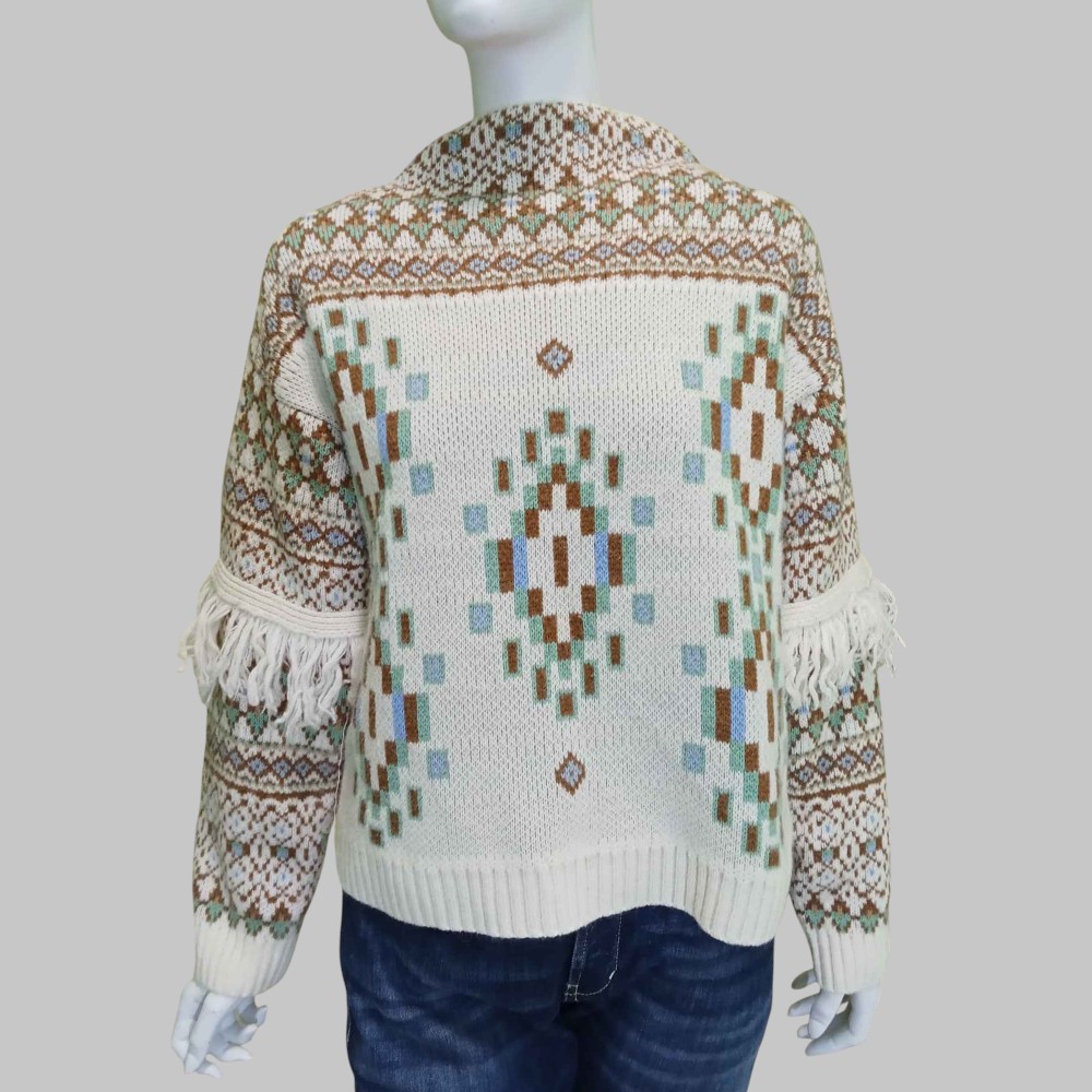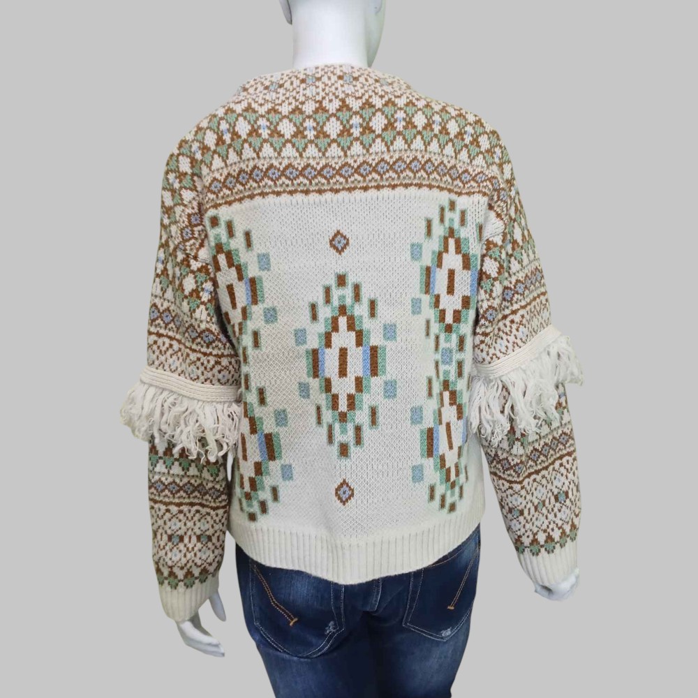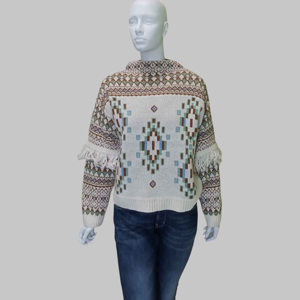 Maglia fantasia alpina con frange alle maniche