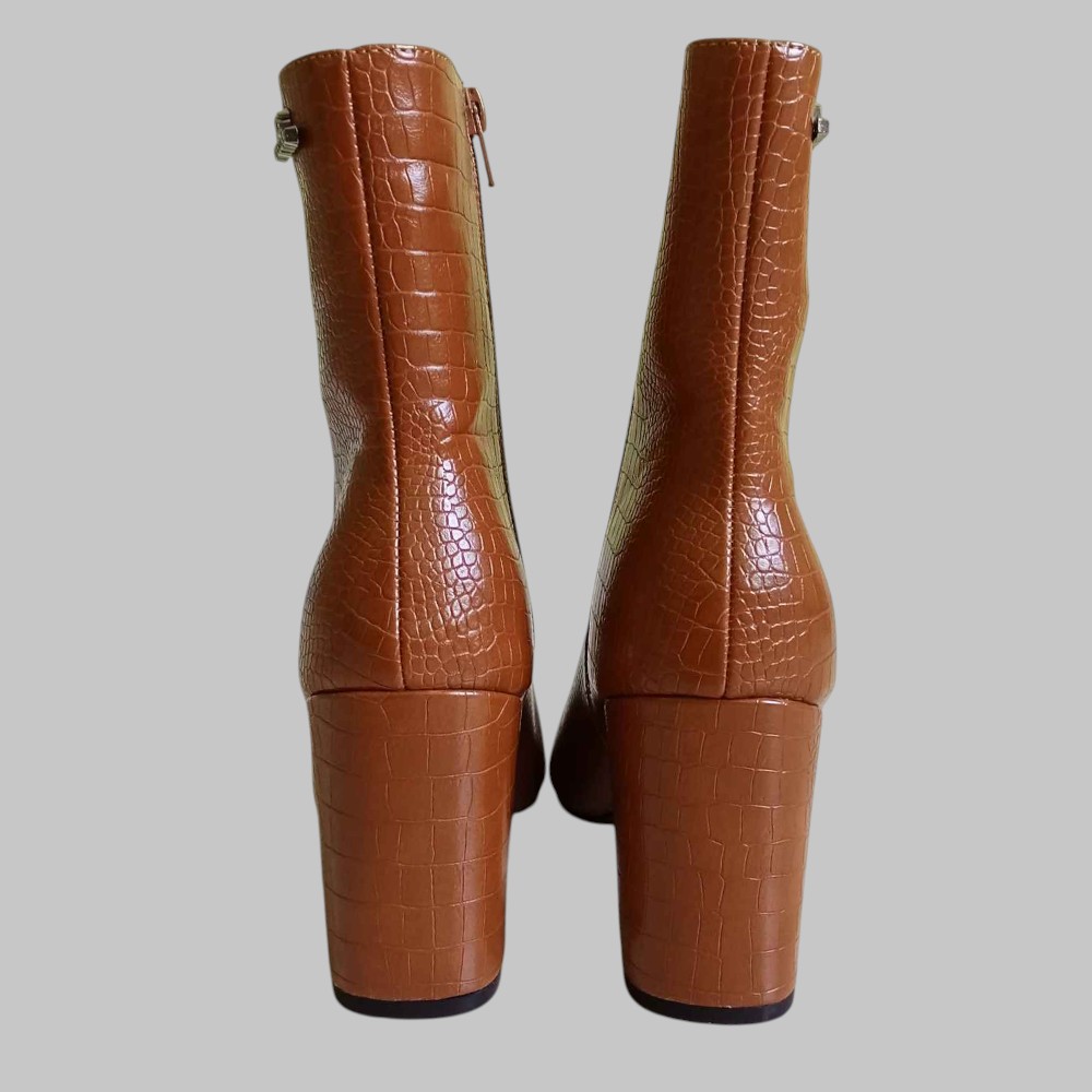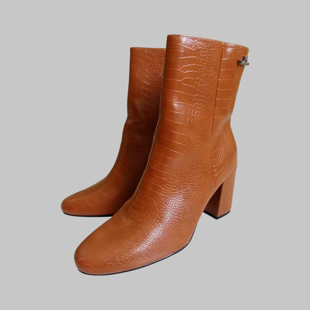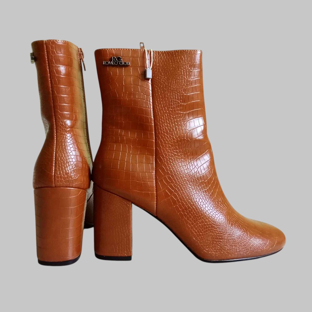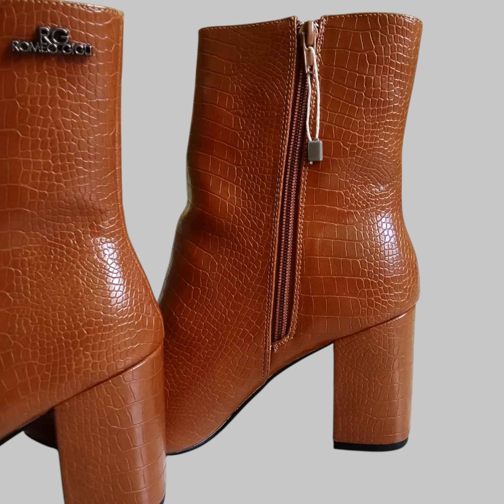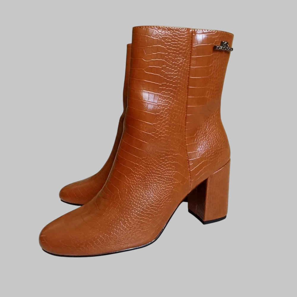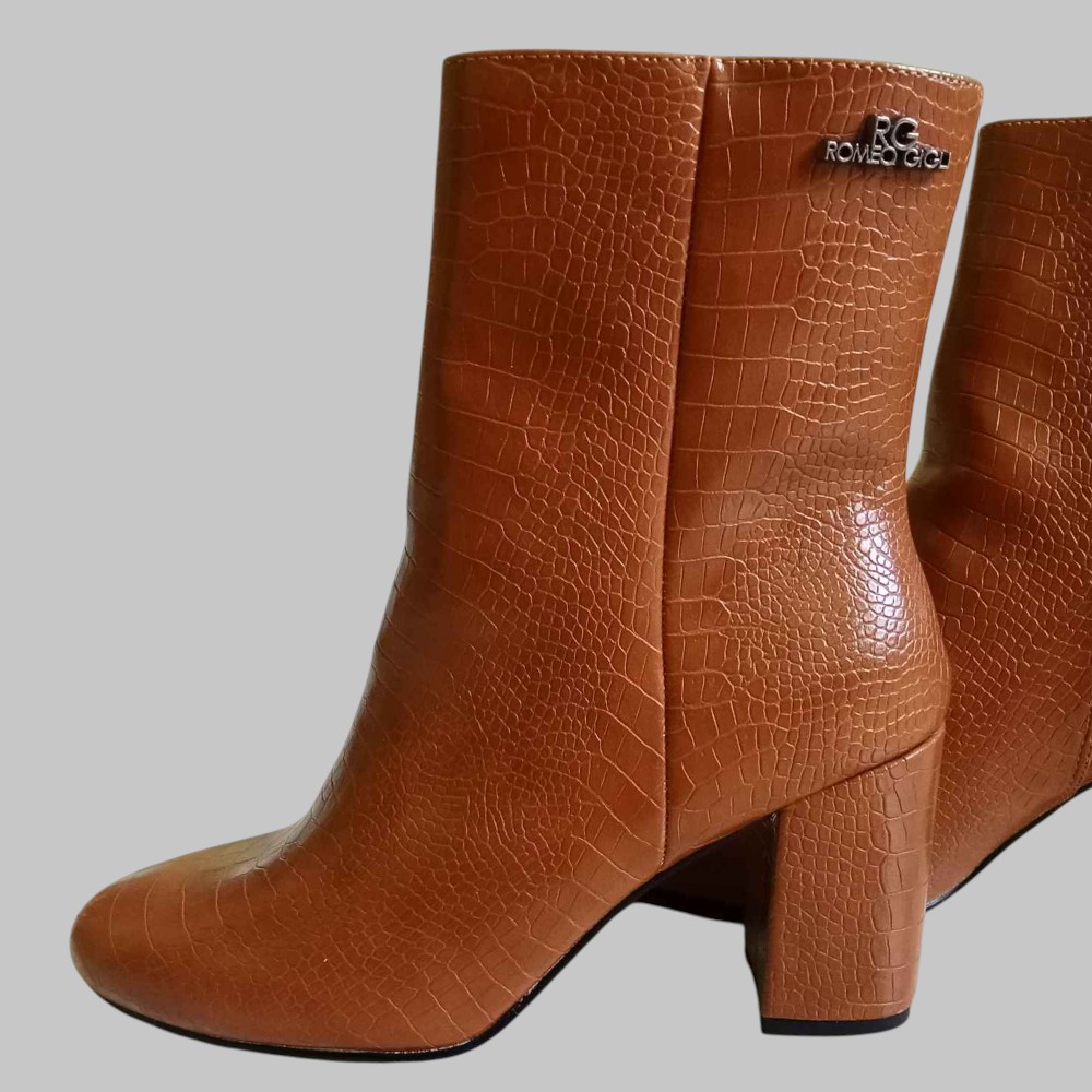 Stivaletti in pelle tinta unita punta tonda tacco quadrato  Altezza tacco 8,5 cm